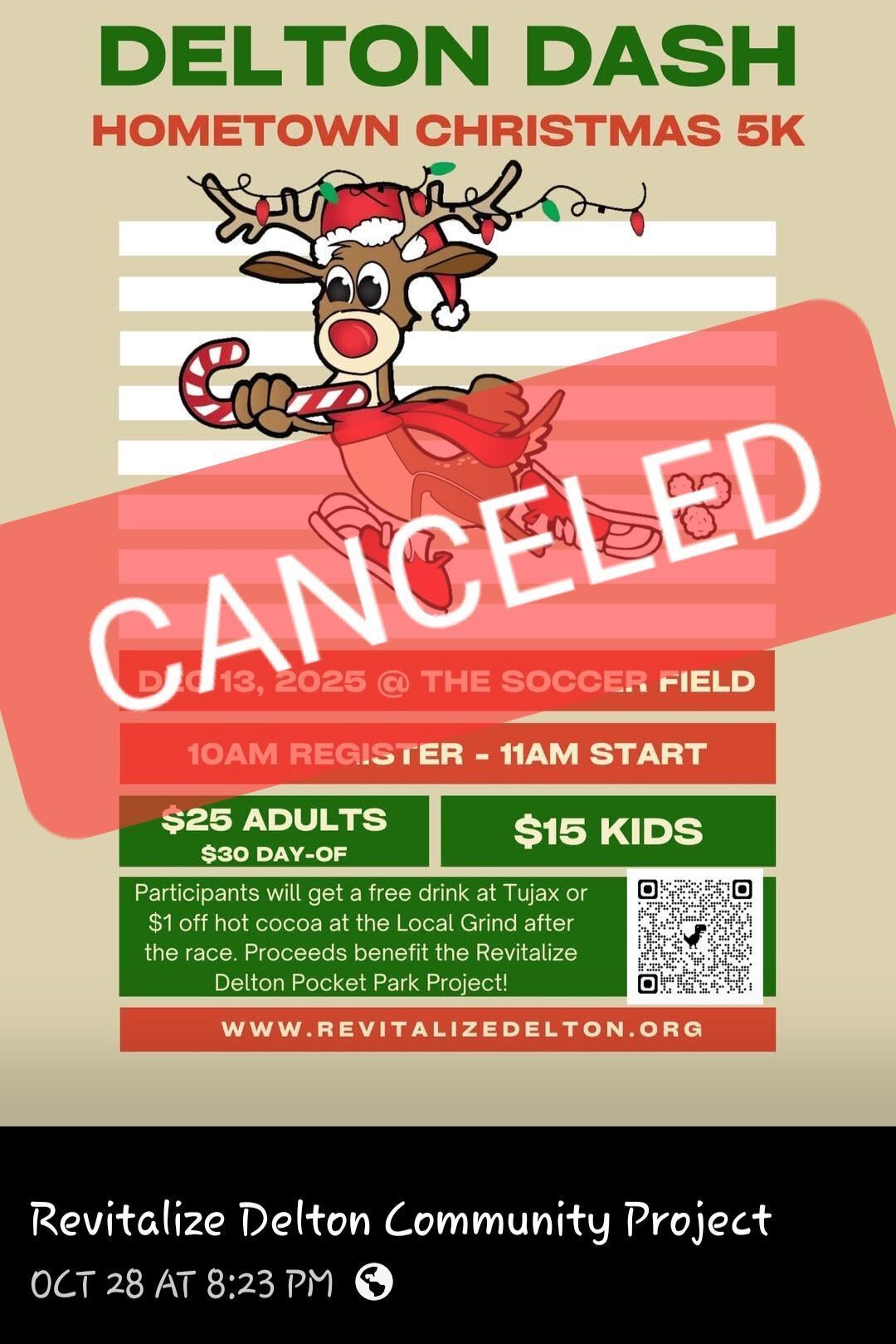 Delton Dash Hometown Christmas 5k on December 13,2025 Has Been Cancelled